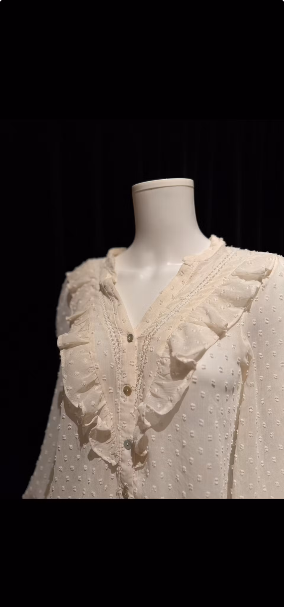 Løft garderoben med denne elegante og tidløse blusen, perfekt for både formelle anledninger og sofistikert hverdagsbruk. Den er laget i et delikat, teksturert stoff med små hevede prikker som gir et subtilt, men luksuriøst uttrykk. Perfekt til skjørt med høyt liv, dressbukser eller jeans for en mer avslappet stil.