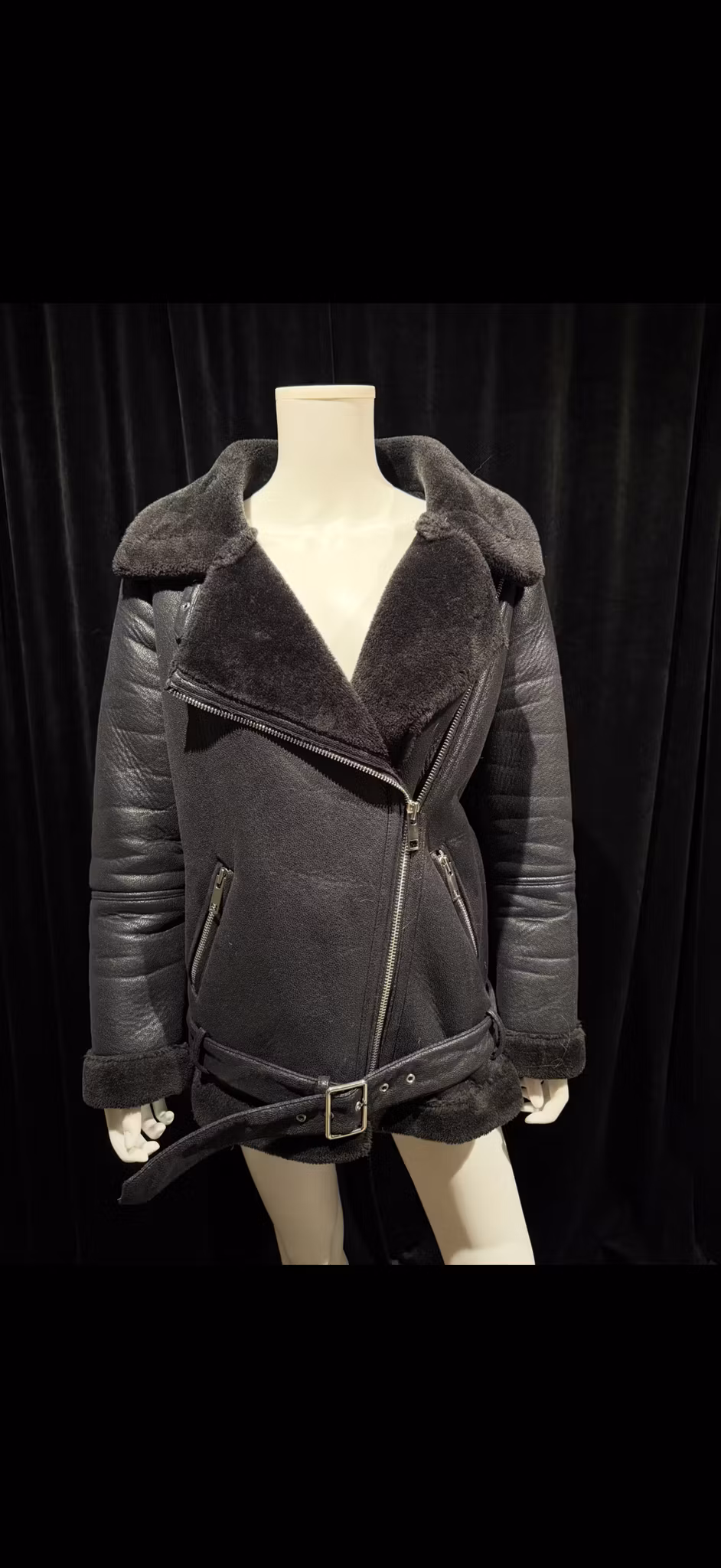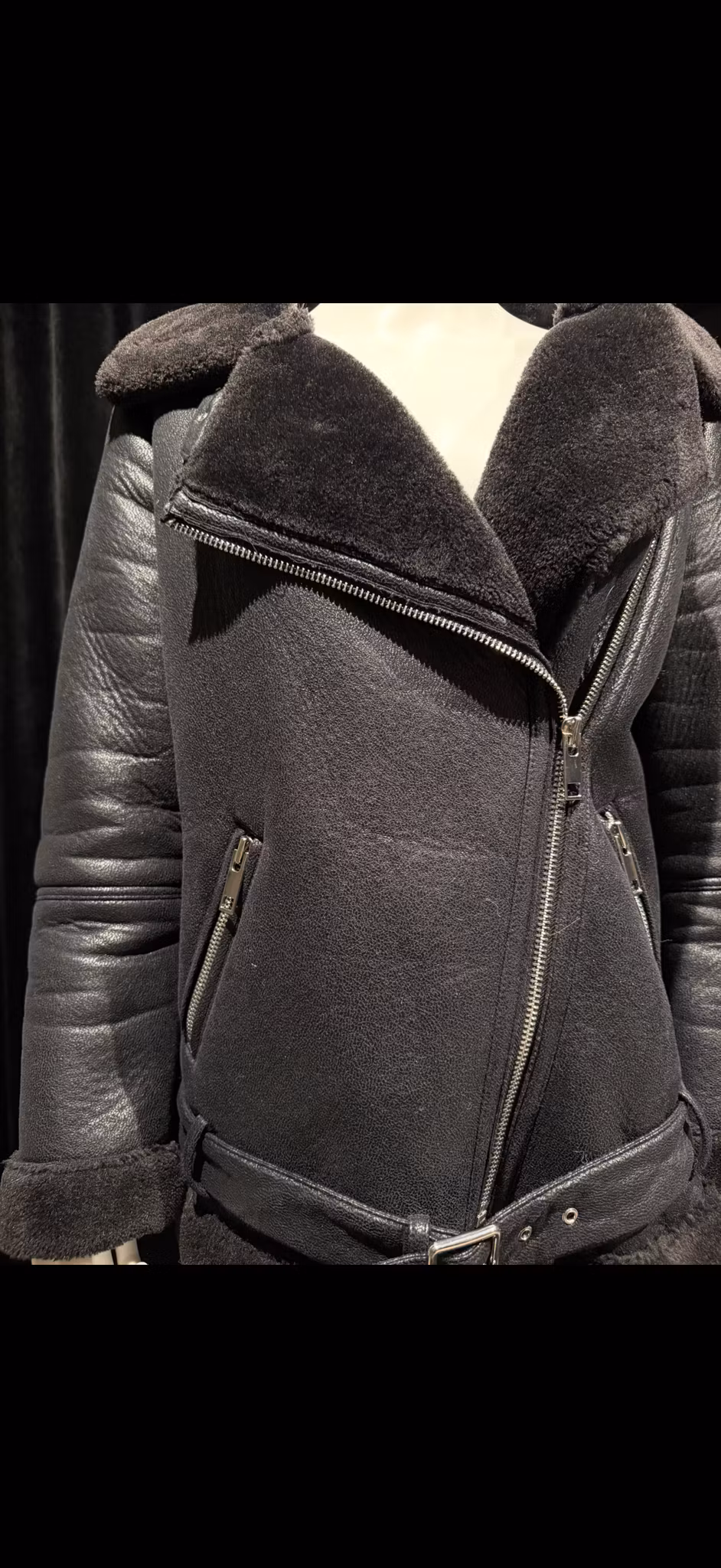 Donna imitert skinnjakke/bikejakke foret med imitert pels. I størrelse 38.