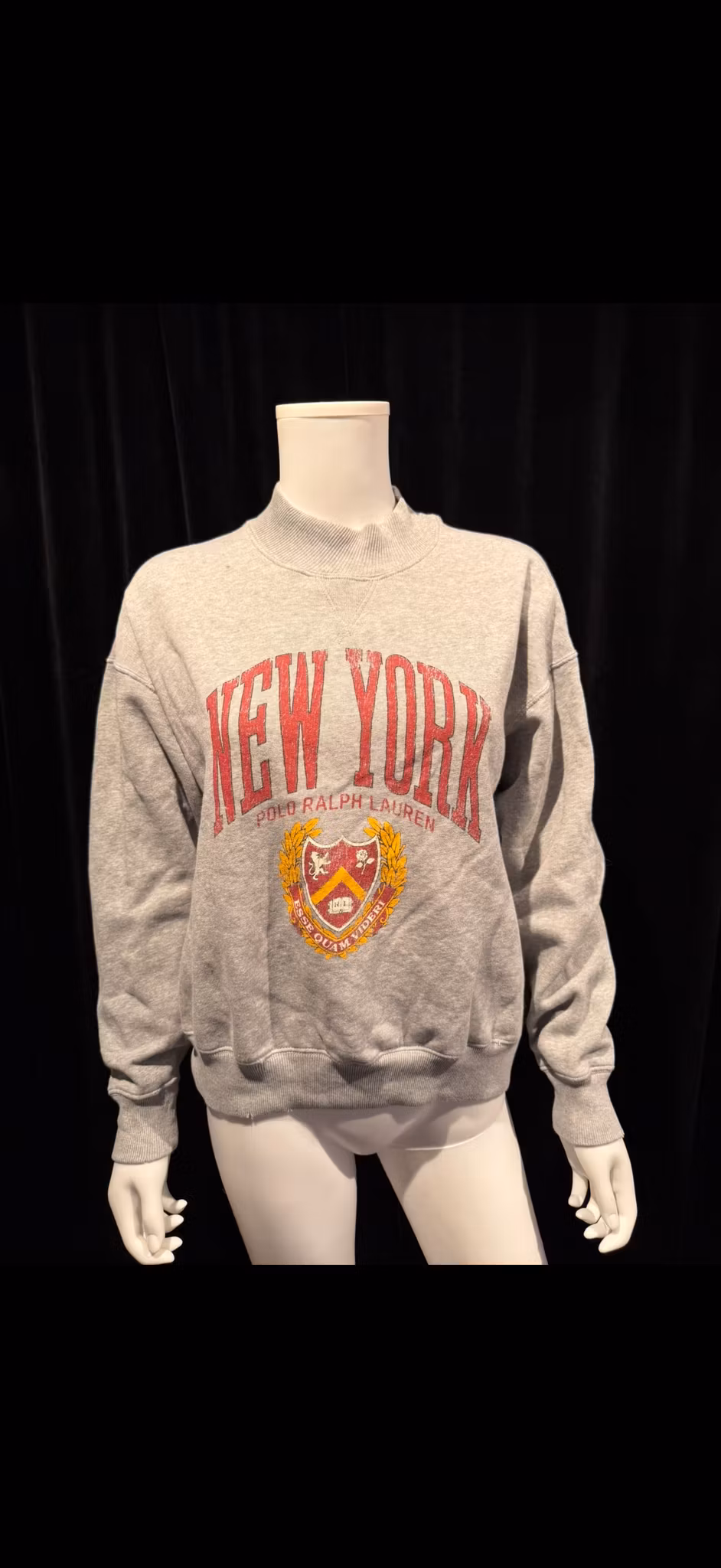 Laget i en bomullsblandet fleece har denne sweatshirt-genseren med avslappet passform en oppdatert mock-neck-krage og er prydet med et karakteristisk våpenmotiv i krakelert trykk midt på brystet. i Størrelse medium. Har to små hull nederst på genseren.