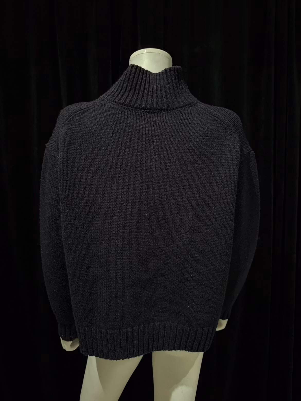Mørkeblå strikkegenser som passer perfekt til hverdagsbruk. Genseren har en myk, høy hals som gir ekstra varme og komfort, samtidig som den legger til et moderne uttrykk. Den mørkeblå fargen gjør genseren enkel å matche med både lyse og mørke underdeler. Nupper.