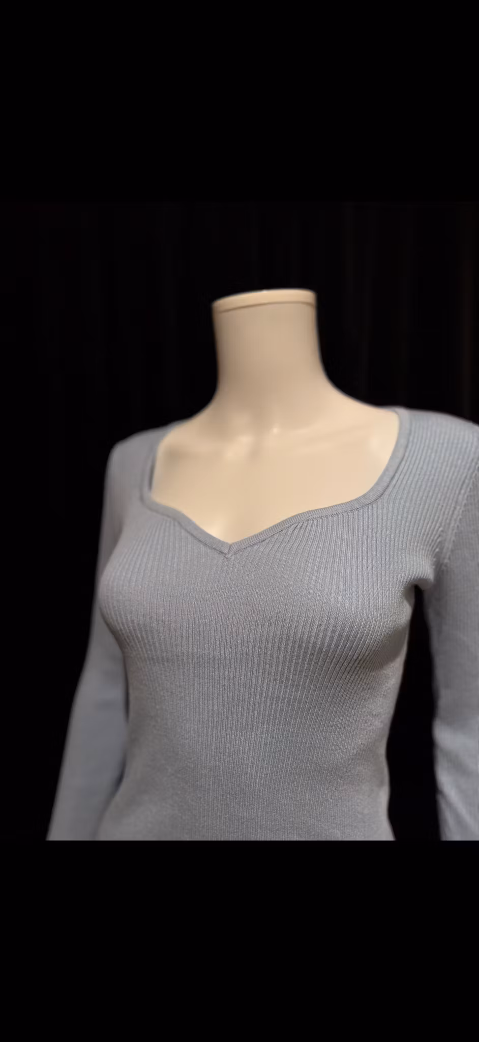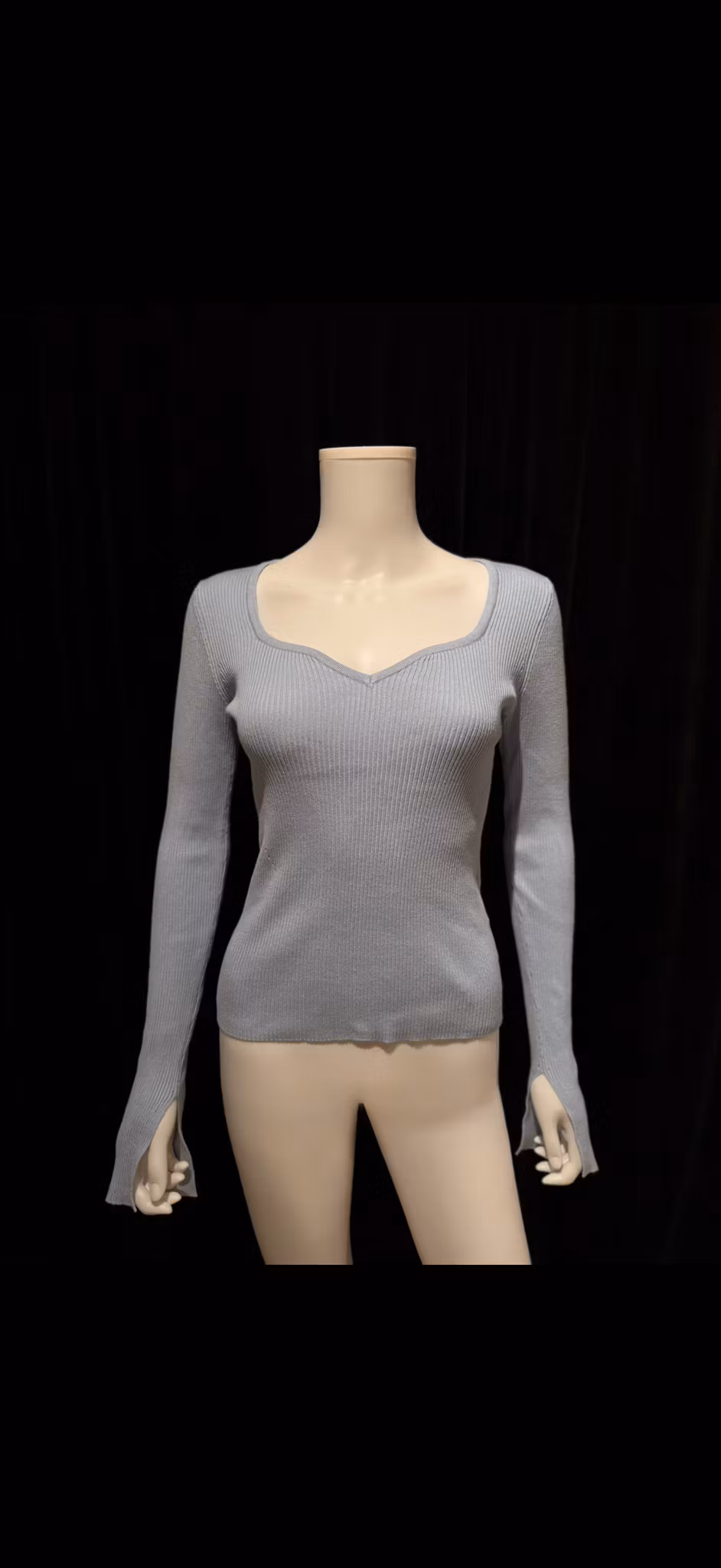 Oppdater garderoben med vår komfortable og elegante blå longsleeve. Laget i mykt ribbstoff som gir både stretch og perfekt passform. Den klassiske utringningen gir et feminint preg, mens splitt på ermet tilfører en trendy detalj som gjør plagget unikt. Perfekt for både hverdagsbruk og lag-på-lag-styling.
