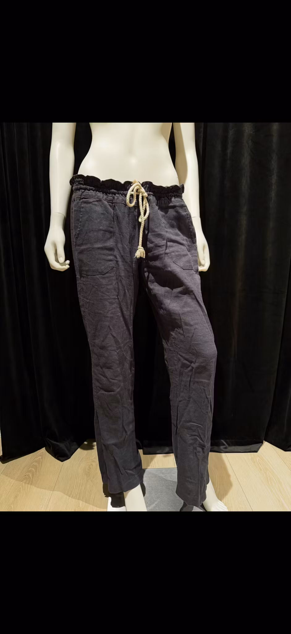 OCEANSIDE PANT er et stilig og komfortabelt par bukser som er perfekt for et avslappet utseende. Disse buksene har en avslappet passform og en smigrende vid ben-silhuett. De er laget av et mykt og pustende stoff som er perfekt for bruk hele dagen. I størrelse medium.